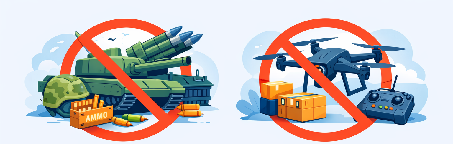 Ниже приведен список категорий, которые мы не перевозим. Если вы сомневаетесь по своей позиции, лучше согласовать номенклатуру заранее. Это проще и дешевле, чем разбираться, когда груз уже отправлен.